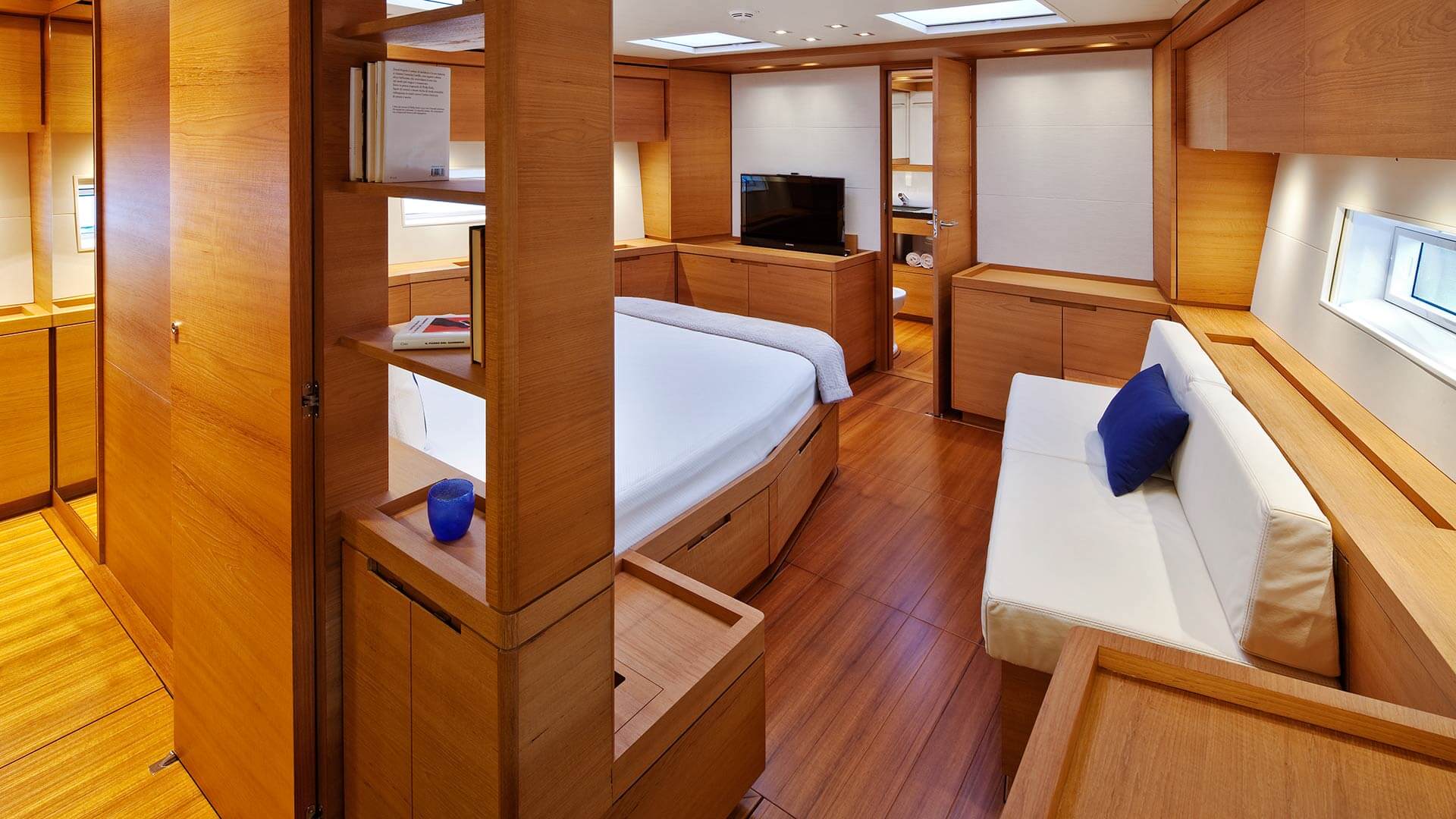 In the main interior THALIMA has a dining area, large saloon and a warm TV lounge with U-shaped sofa, flat screen TV and built-in audio system.