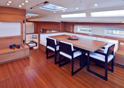 Although THALIMA is a true bluewater cruiser, she has also been designed for high sailing performance, to combine relaxing cruising and exciting sailing. The forward cockpit allows plenty of space for guests to relax while the crew is manoeuvring. The retractable anchor means the foredeck and bow are clear of obstruction.