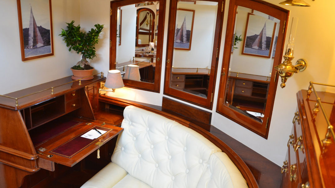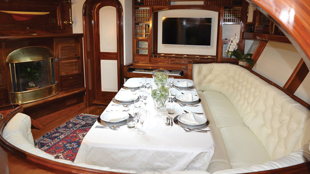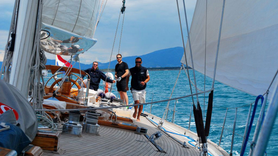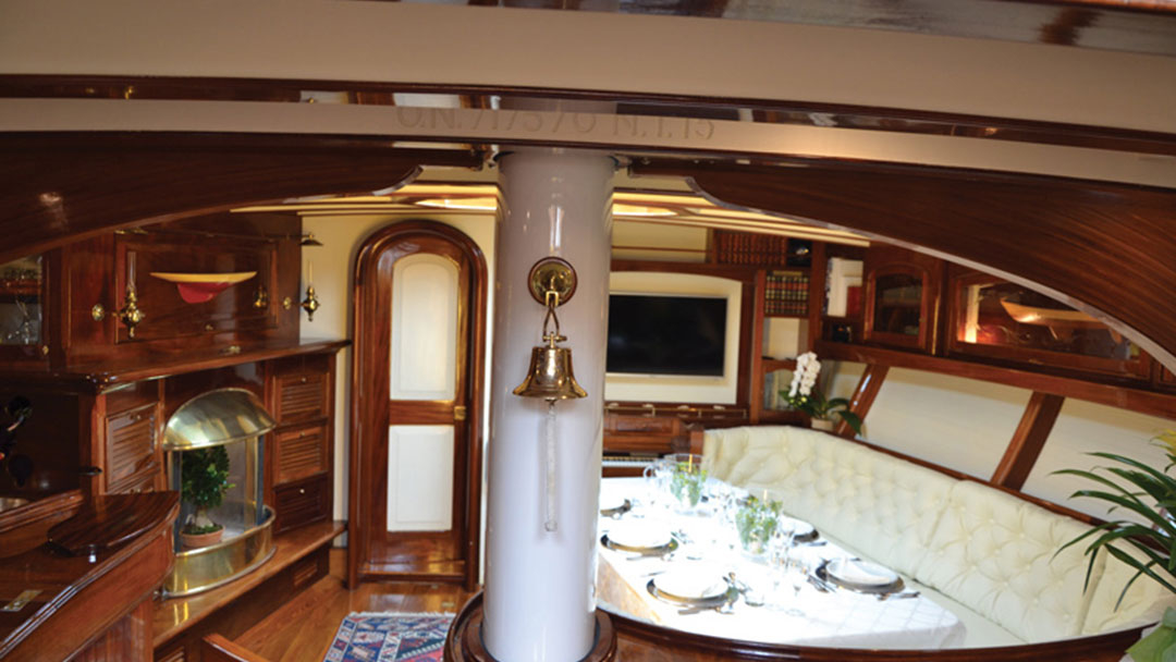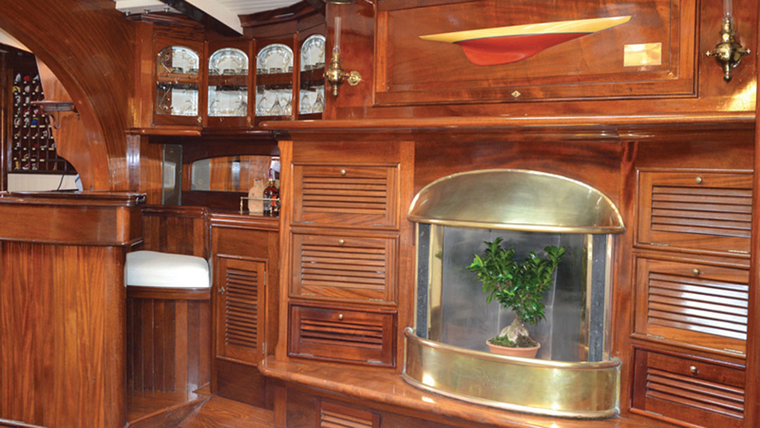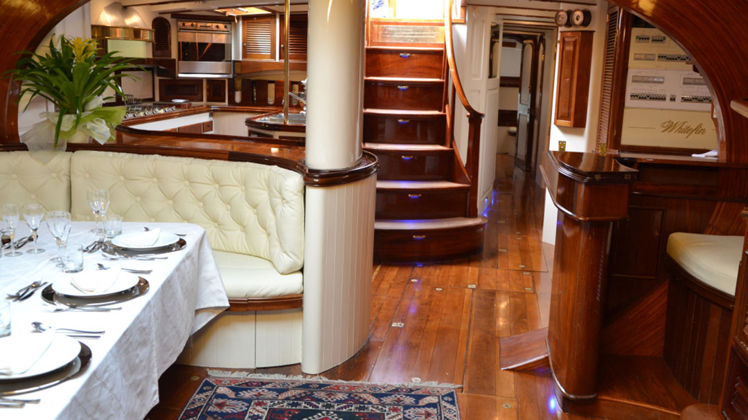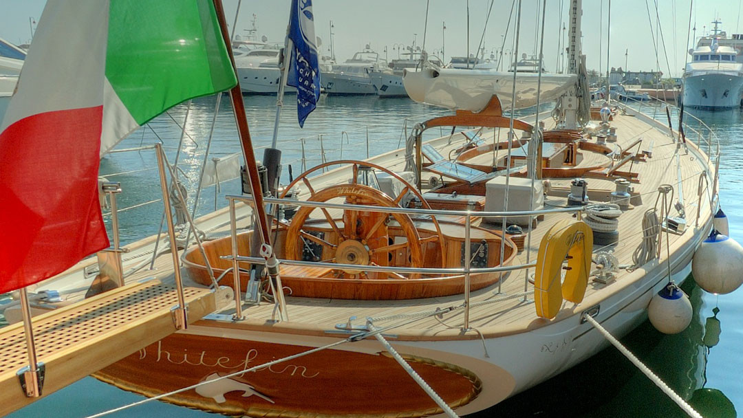 Whitefin The boat was designed by Californian designer Bruce King, who is known for a series of successful ocean racing and classic maxi yachts. With Whitefin the result is a mix of agility, lightness and grace, so exquisitely proportioned that it makes you forget her 90-foot size and gives her one of her greatest qualities: speed. If the outside is state-of-the-art technology, combined with traditional style, the inside is simply pure delight of nineteenth century elegance: from the magnificent decagonal skylight and the fireplace in the main salon, the piano desk, the hot tub in the owner’s suite, every part of this boat brings you to the glorious years of the Gilded Era, when sailing was born as an exclusive sport for gentlemen, and them only. Her modern keel design and the extraordinary large sailing plan , allowed her to win, in recent years, the most prestigious trophies in the most important regattas for her category, the Spirit of Tradition, such as: the Maxi Yacht Rolex Cup in Portocervo, Sardinia; the Vele d’Epoca di Imperia, Trofeo Prada or TrofeoPanerai, in Imperia, Liguria; and Les Voiles de Saint Tropez, in Saint Tropez, France.